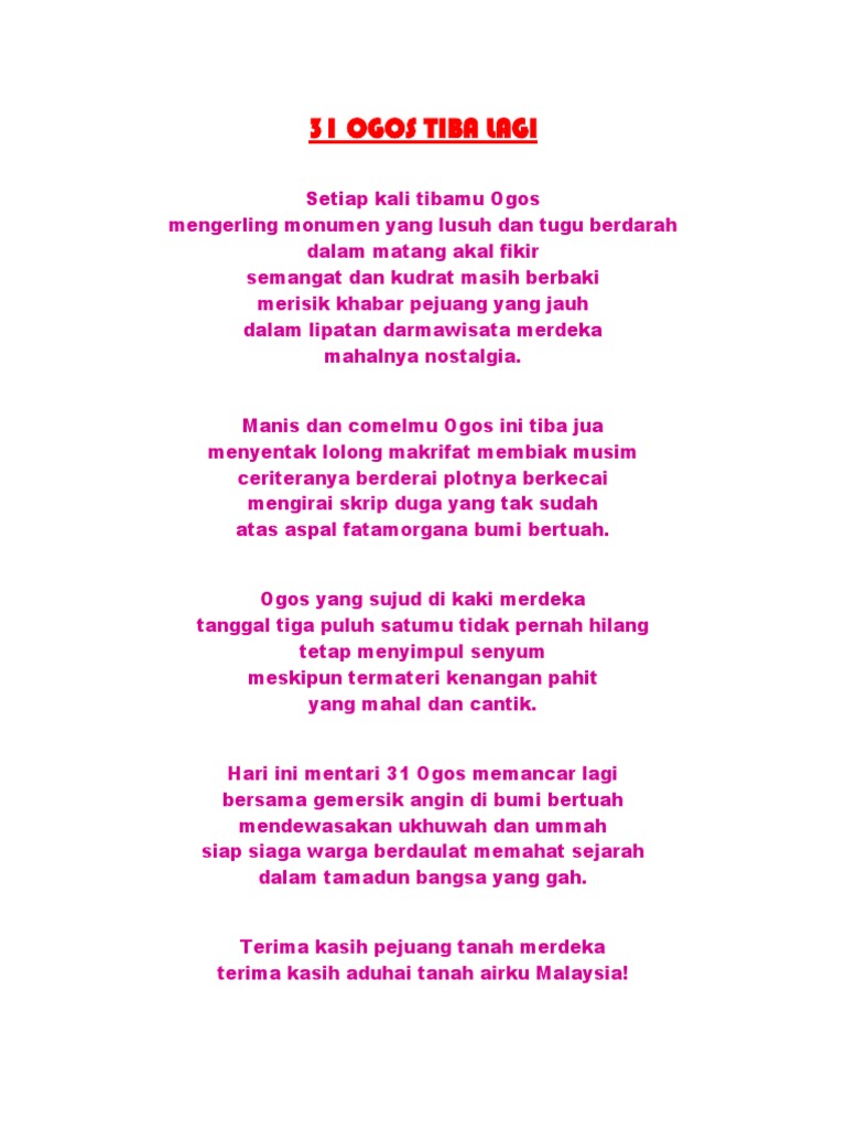 Sajak Docx Pertandingan Menulis Pantun Sajak Aku Anak Merdeka Aku Anak Merdeka Dilahirkan Di Bumi Yang Aman Dan Sentosa Ini Malaysia Namanya Aku Course Hero
