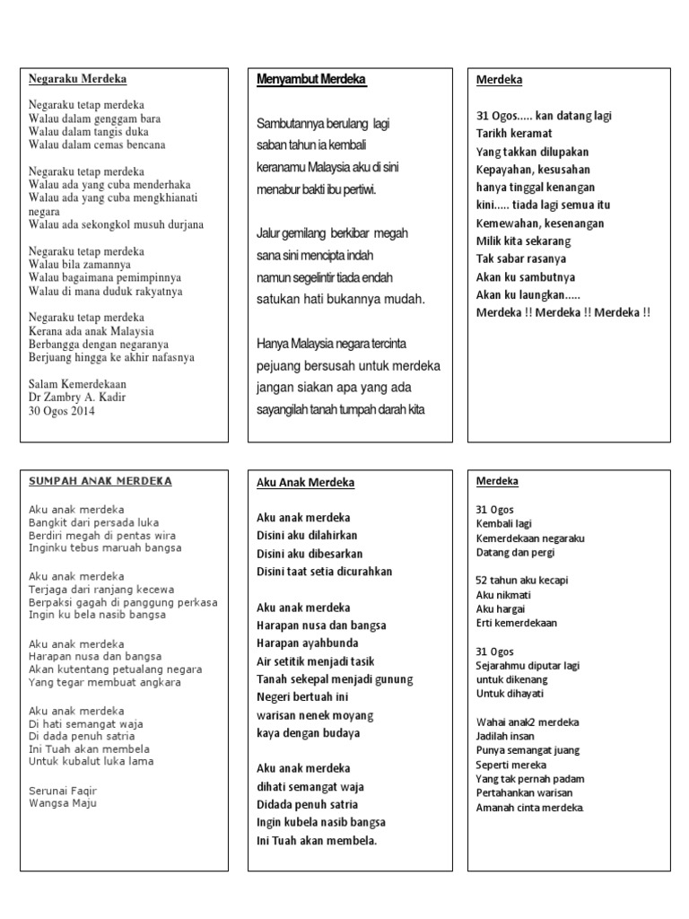 Koleksi Sajak Sajak Merdeka Smk Toh Johan Trong Perak