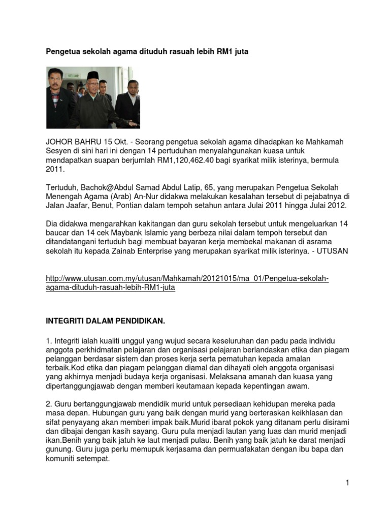 Mesej Integriti Melakukan Pekerjaan Jabatan Perdana Menteri Facebook