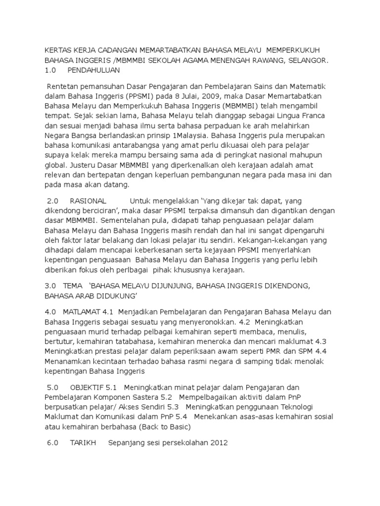 Kertas Kerja Cadangan Memartabatkan Bahasa Melayu