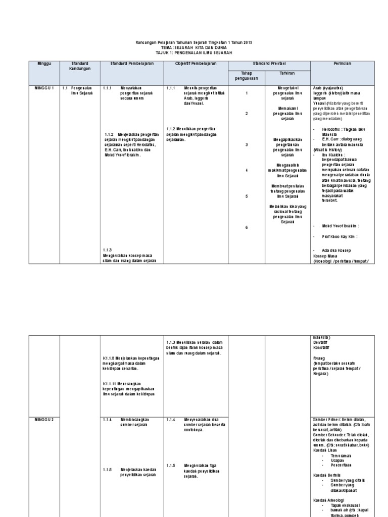 Doc Rancangan Pelajaran Tahunan Sejarah Tingkatan 1 Tahun 2017 Tema Sejarah Kita Dan Dunia Tajuk 1 Pengenalan Ilmu Sejarah Aliah Nabihah Academia Edu