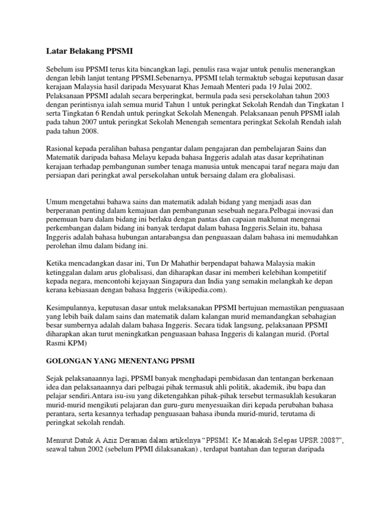 Latar Belakang Ppsmi Golongan Yang Menentang Ppsmi