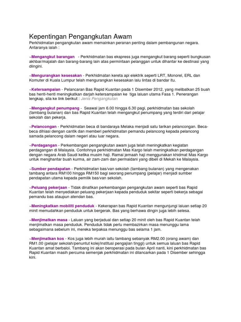 Kepentingan Pengangkutan Awam Di Malaysia Pptx