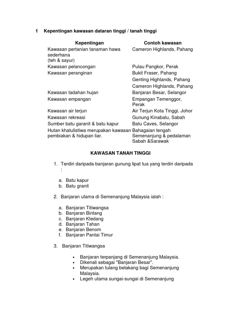 Bentuk Muka Bumi Kepentingan Tanah Tinggi Di Negara Kita Ialah