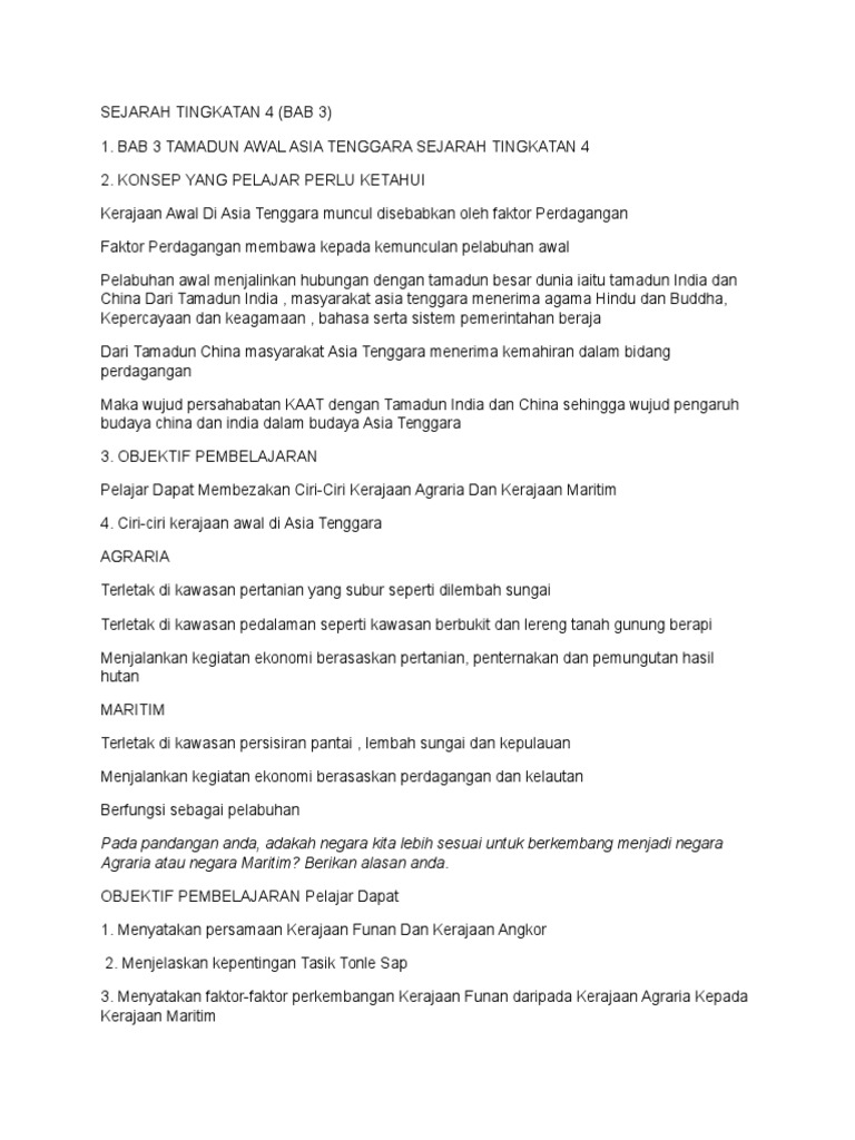Sejarah Tingkatan 4 Bab 3 Kerajaan Awal Asia Tenggara Soalan Dan Jawapan