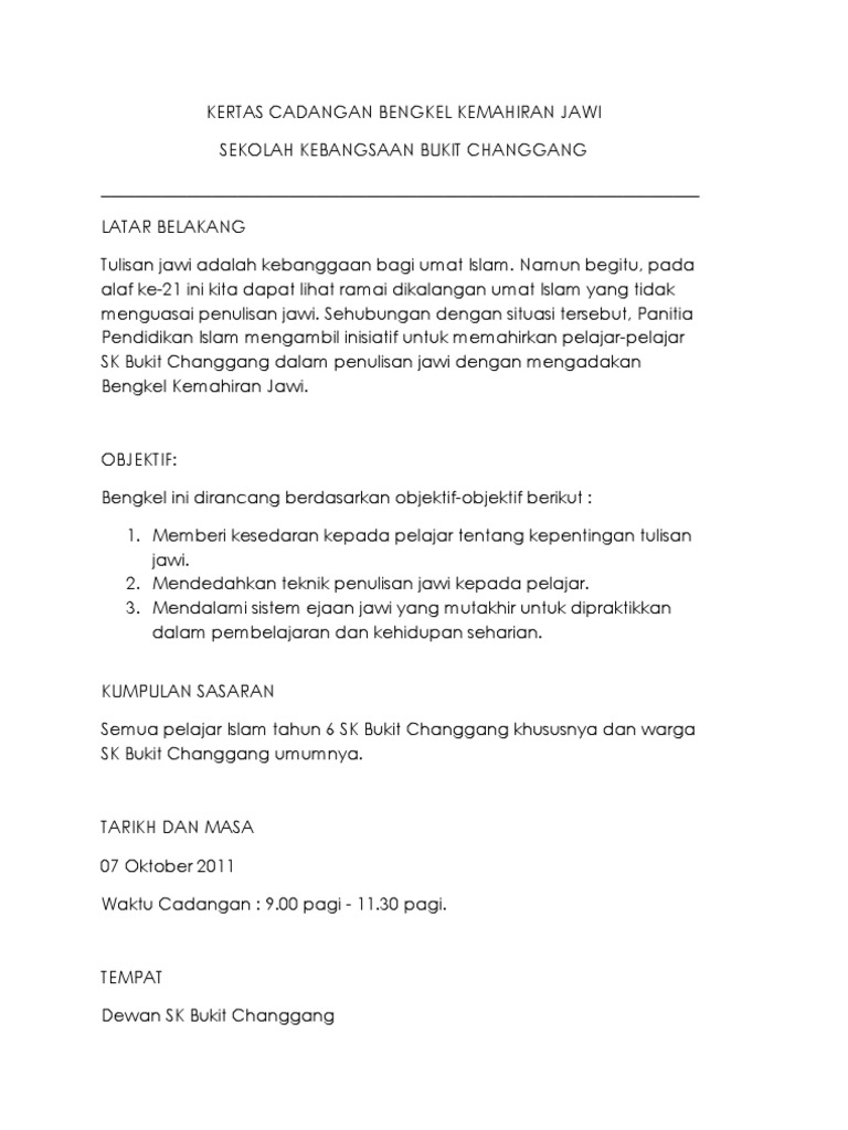 Kertas Cadangan Bengkel Kemahiran Jawi