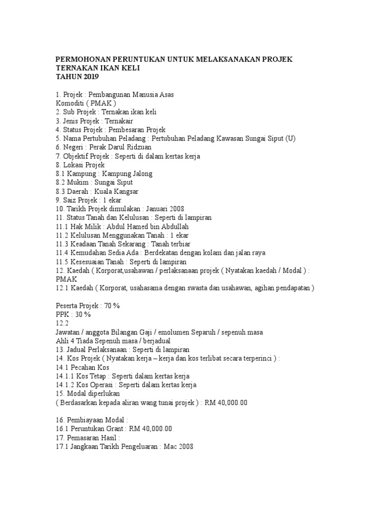 Contoh Terbaik Kertas Kerja Perniagaan Projek Ternakan Ikan Keli Lembaga Pertubuhan Peladang