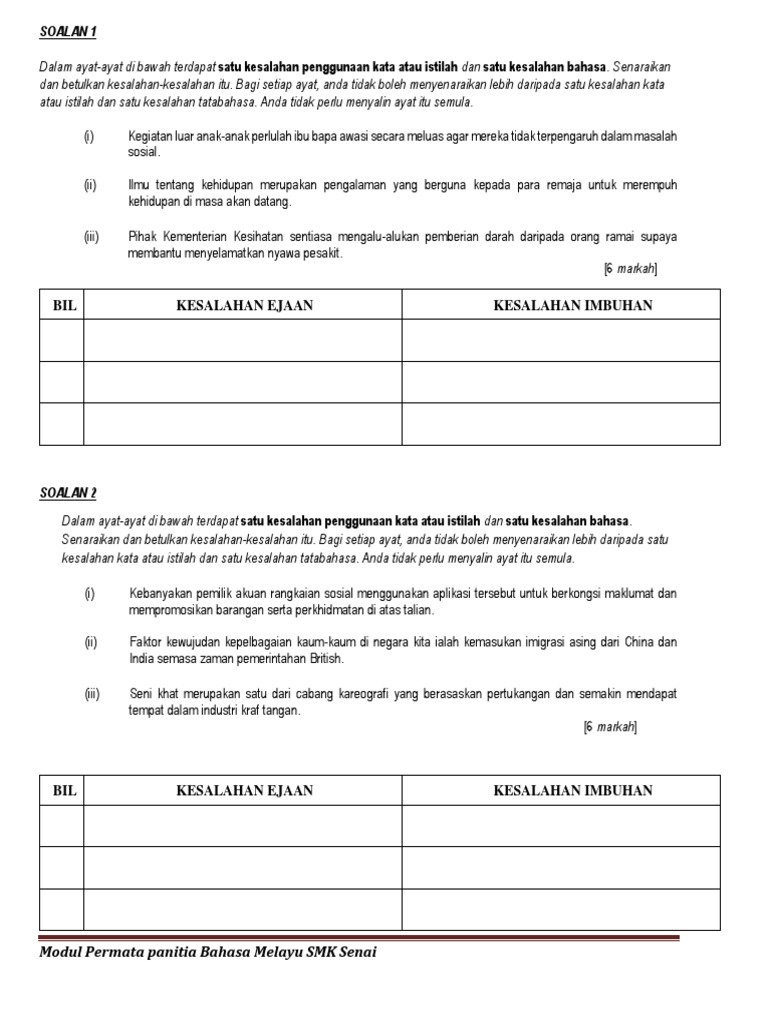 Laman Bahasa Melayu Spm Soalan Dan Cadangan Jawapan Soalan 3 D Mengesan Kesalahan Istilah Kata Dan Kesalahan Tatabahasa Peperiksaan Percubaan Negeri Melaka