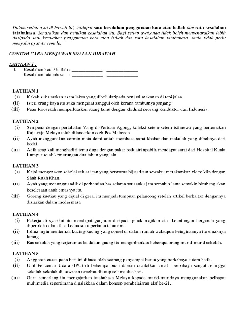 Dalam Setiap Ayat Di Bawah Terdapat Satu Kesalahan Penggunaan Kata Atau Istilah Dan Satu Kesalahan Tatabahasa Docx