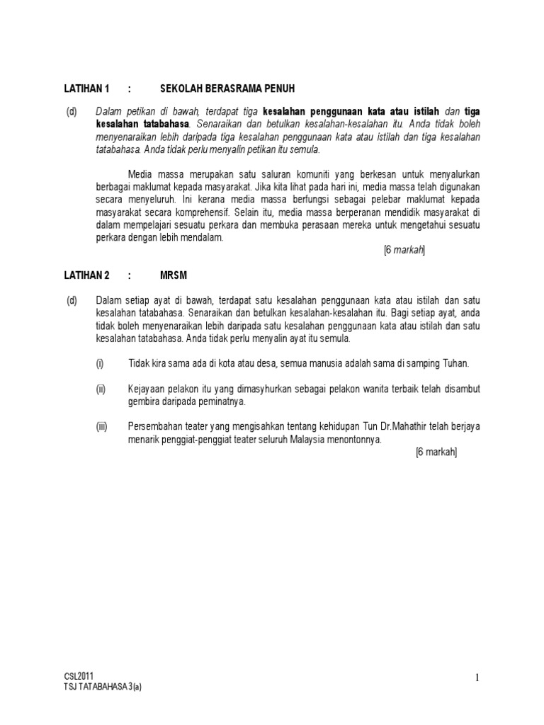 Laman Bahasa Melayu Spm Cadangan Jawapan Soalan 3 D Mengesan Kesalahan Istila Kata Dan Kesalahan Tatabahasa Peperiksaan Percubaan Mrsm