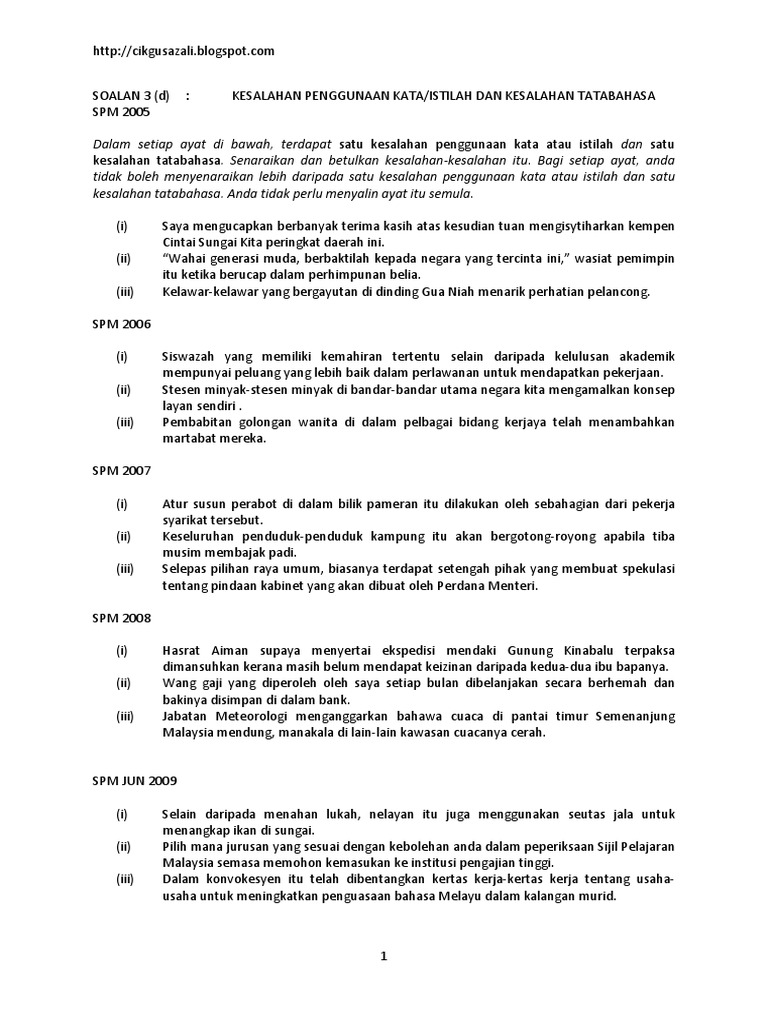 Laman Bahasa Melayu Spm Soalan Dan Cadangan Jawapan Soalan 3 D Megesan Kesalahan Kata Istilah Dan Tatabahasa Peperiksaan Percubaan Negeri Pahang