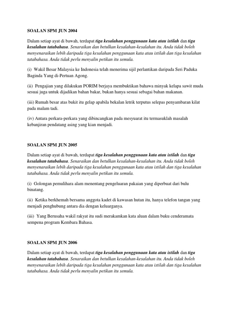 Laman Bahasa Melayu Spm Soalan Dan Cadangan Jawapan Soalan 3 D Mengesan Kesalahan Kata Dan Kesalahan Tatabahasa Peperiksaan Percubaan Sbp