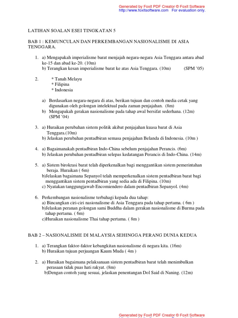 Soalan Stpm 2000 2010 Sejarah Malaysia Asia