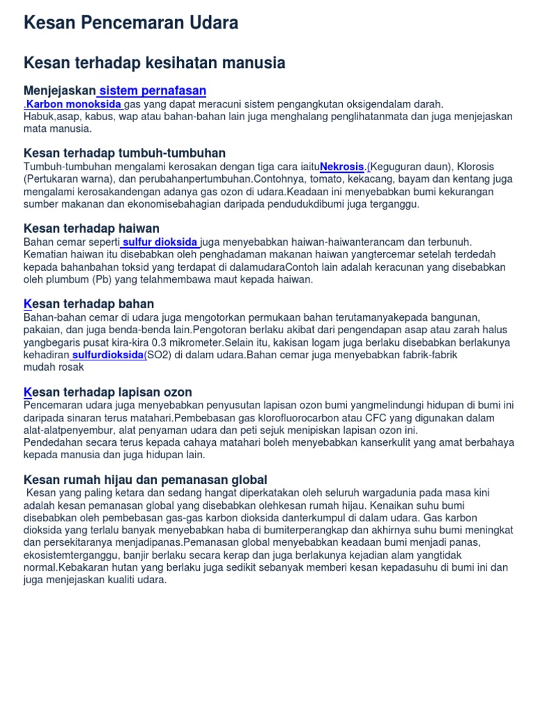 Kesan Pencemaran Udara Kesan Terhadap Kesihatan Manusia