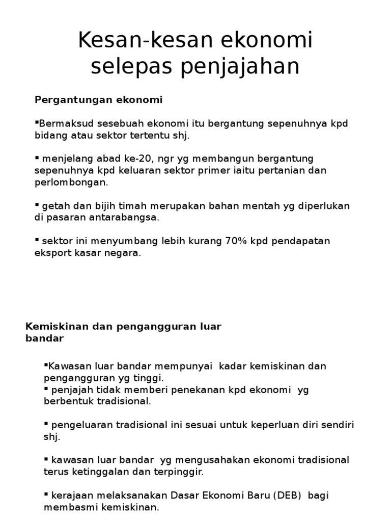 Kesan Kesan Ekonomi Selepas Penjajahan
