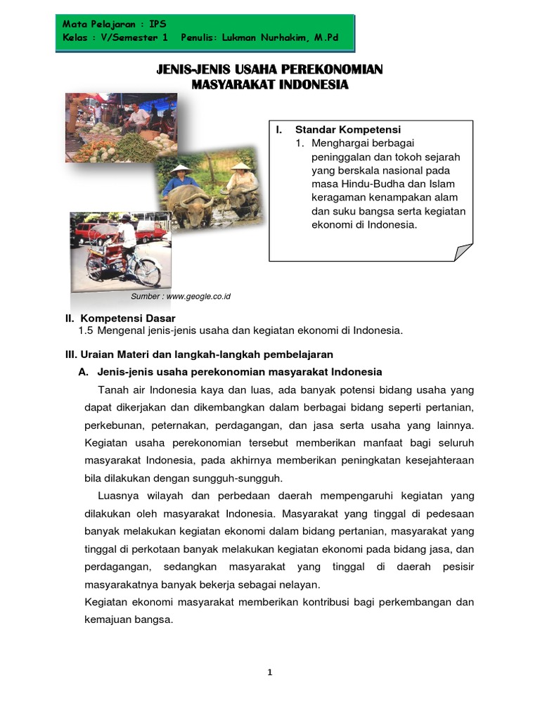 Materi Ips Kelas 5 Jenis Usaha Dan Kegiatan Ekonomi Masyarakat