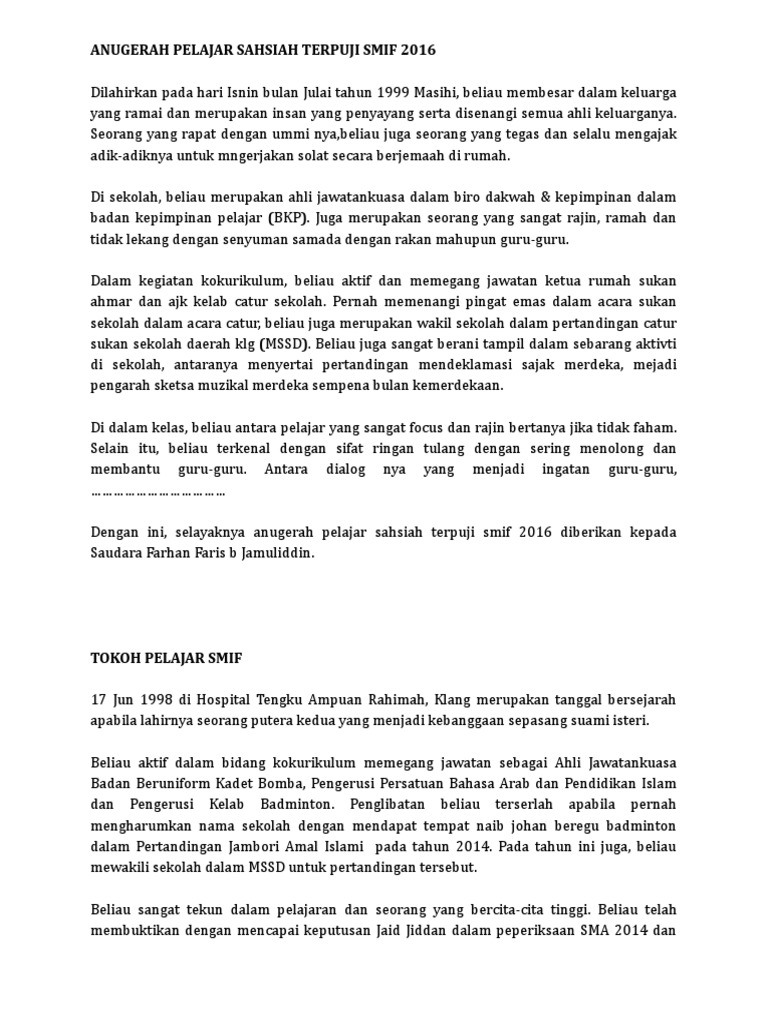 Teks Tokoh Pelajar Smif 2016
