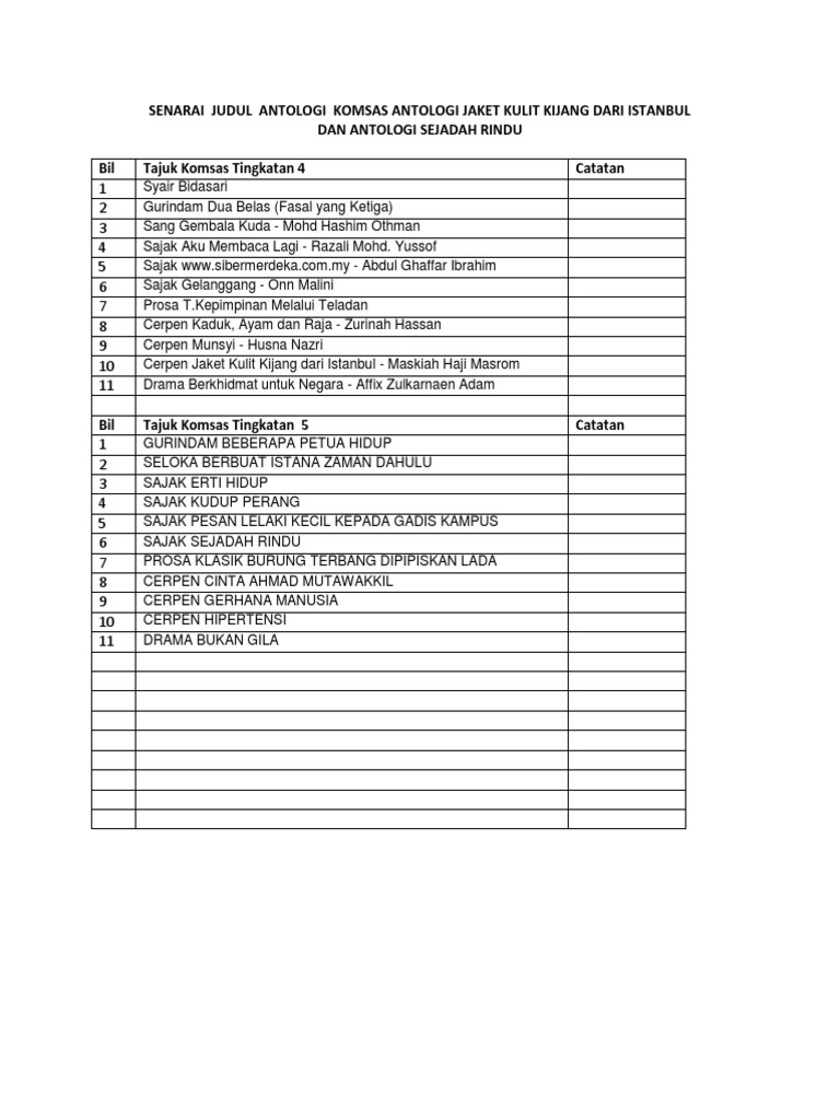 Senarai Judul Antologi Komsas Antologi Jaket Kulit Kijang Dari Istanbul