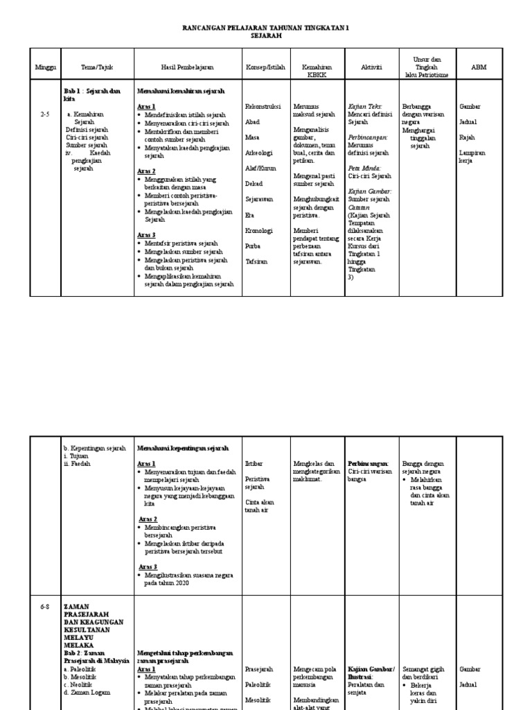Rancangan Pelajaran Tahunan Sejarah Tingkatan 1 Tahun 2018 Terbaru Docx