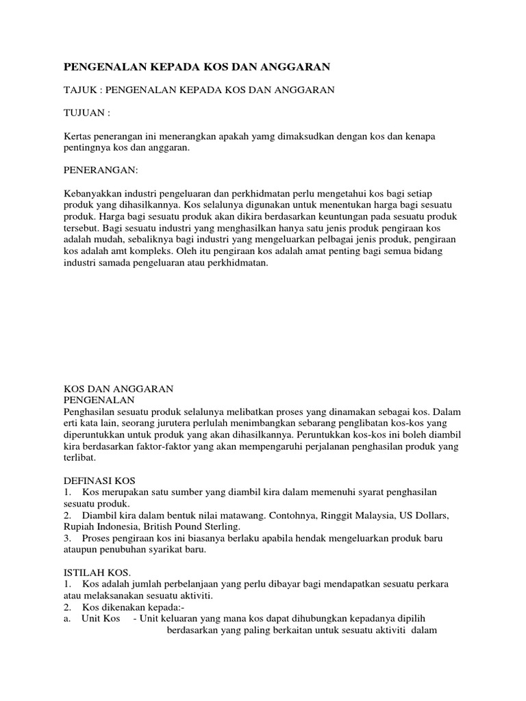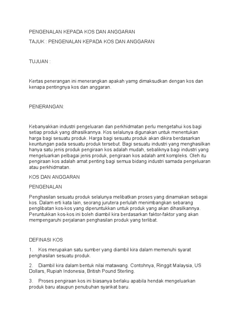 Pengenalan Kepada Kos Dan Anggaran