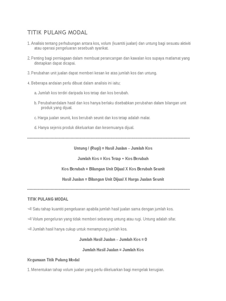 Pengiraan Titik Pulang Modal Docx