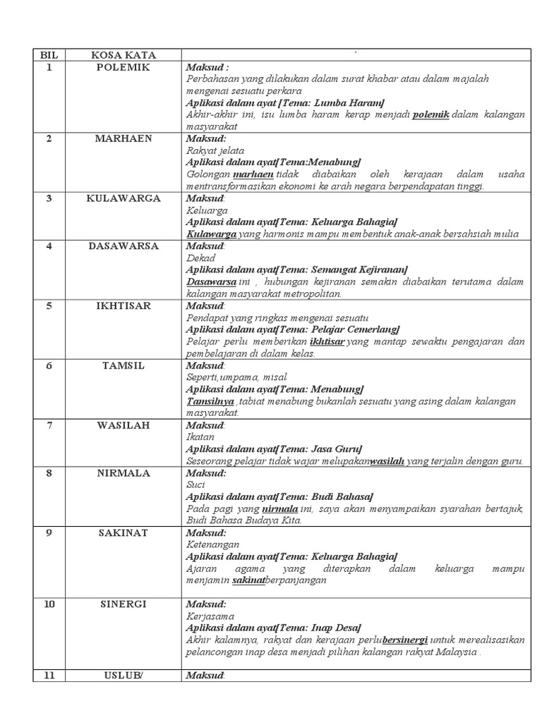 Kosa Kata Dan Ungkapan Menarik Bahasa Melayu Spm