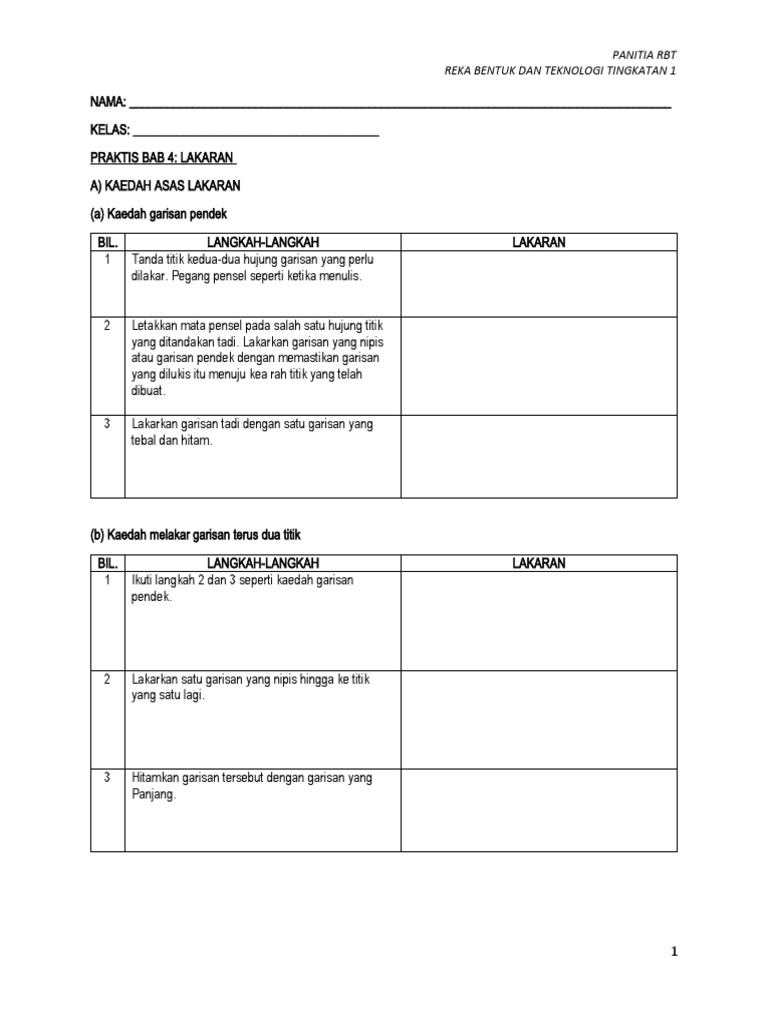 Rbt Tingkatan 1 Bab 4 Lakaran