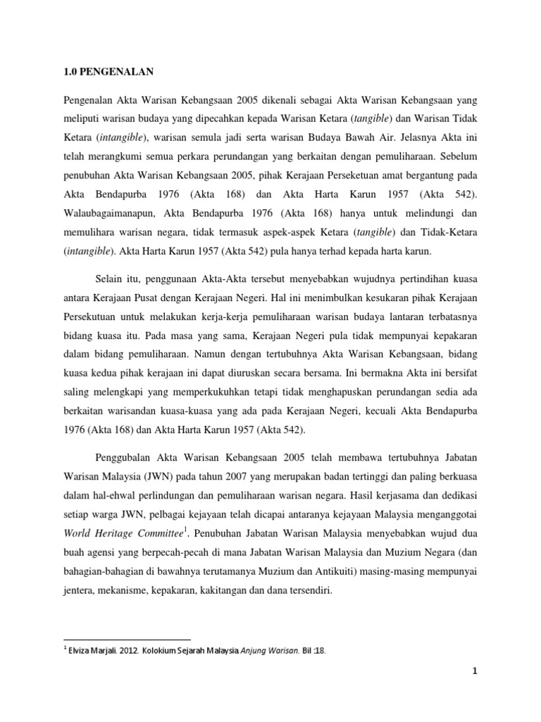 Keperluan Pemuliharaan Budaya Dan Warisan Di Malaysia Docx Document