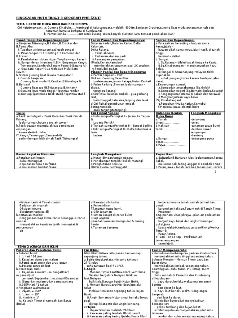 Ringkasan Nota Ting 1 3 Geografi Pmr 23 1