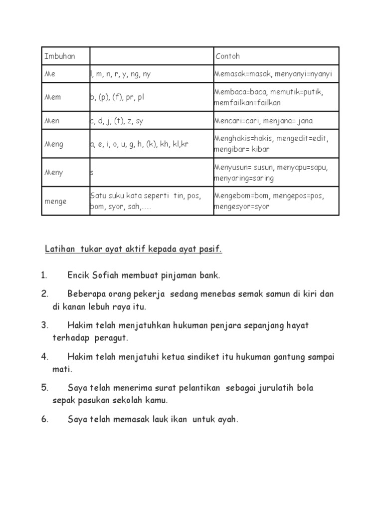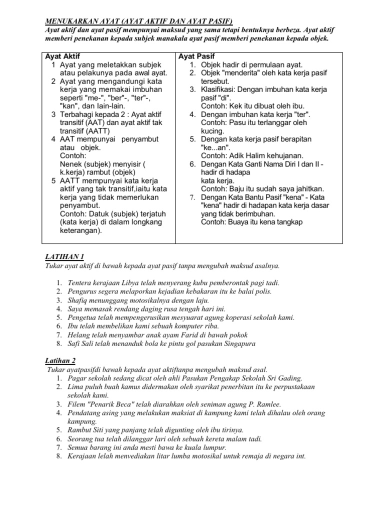 Latihan Ayat Pasif Dan Aktif