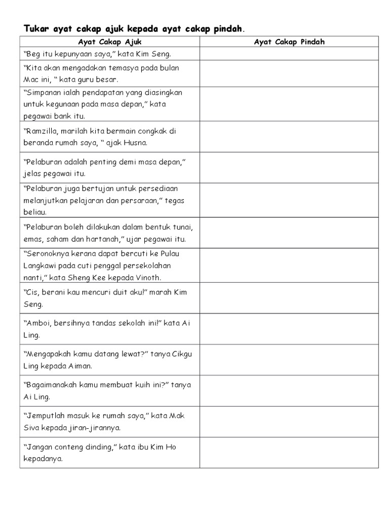 Latihan Cakap Ajuk Dan Cakap Pindah