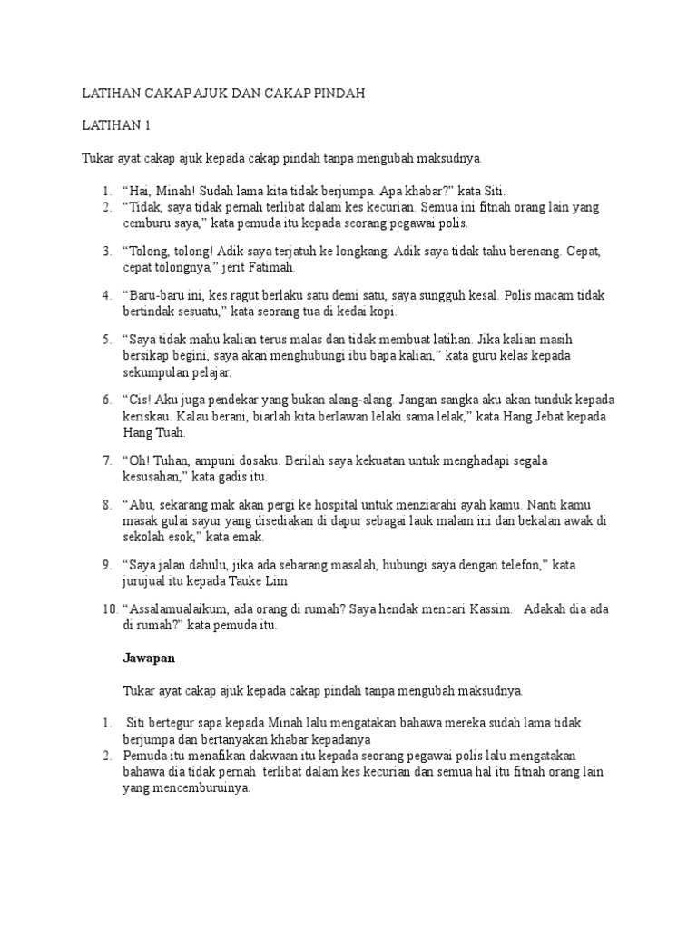 Latihan Cakap Ajuk Dan Cakap Pindah