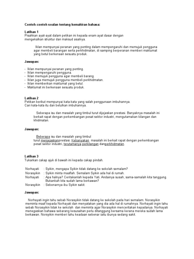 Contoh Soalan Kemahiran Bahasa Bm Spm