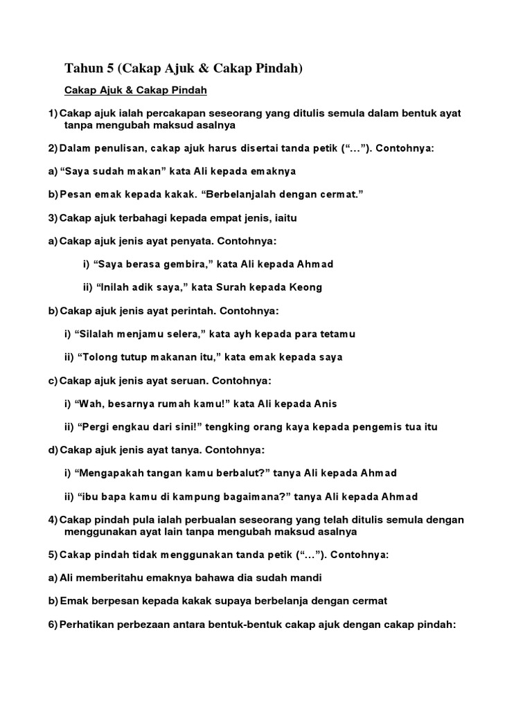 Latihan Cakap Ajuk Dan Cakap Pindah Tahun 7