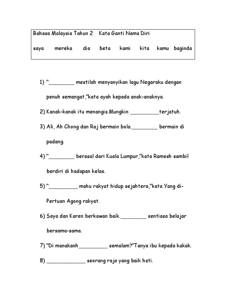 Contoh Soalan Kata Ganti Nama Diri Upsr J Kosong T