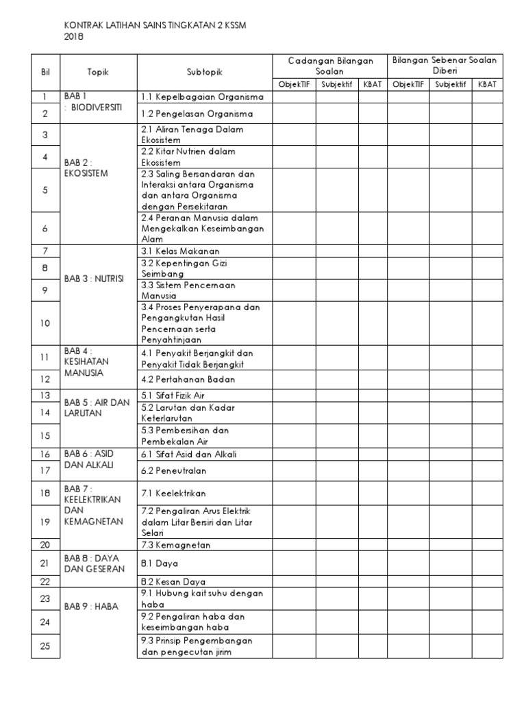 Kontrak Latihan Sains Tingkatan 2 Kssm 2018