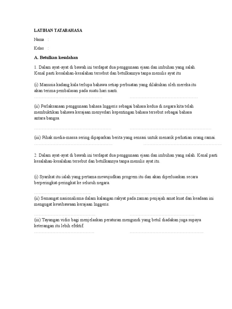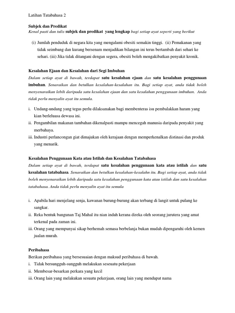 Latihan Mengenal Pasti Kesalahan Ejaan Dan Imbuhan Docx