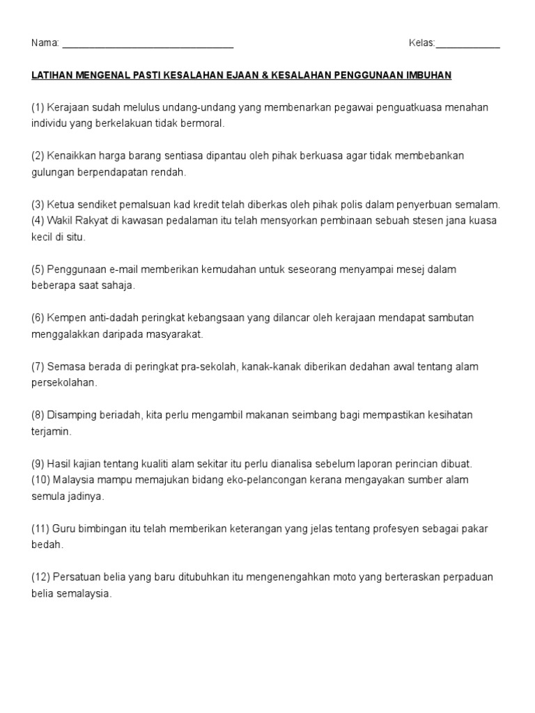 Latihan Mengenal Pasti Kesalahan Ejaan Dan Imbuhan Docx Document