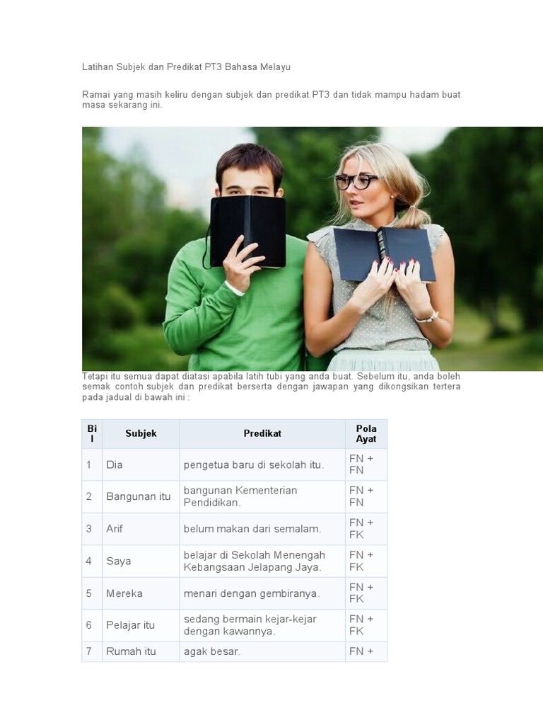 Latihan Subjek Dan Predikat Pt3 Jawapan Bahasa Melayu