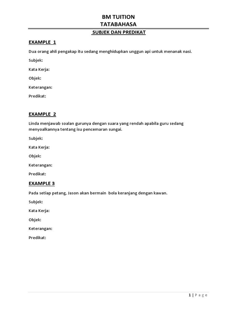 Latihan Subjek Dan Predikat Pt3 Bahasa Melayu