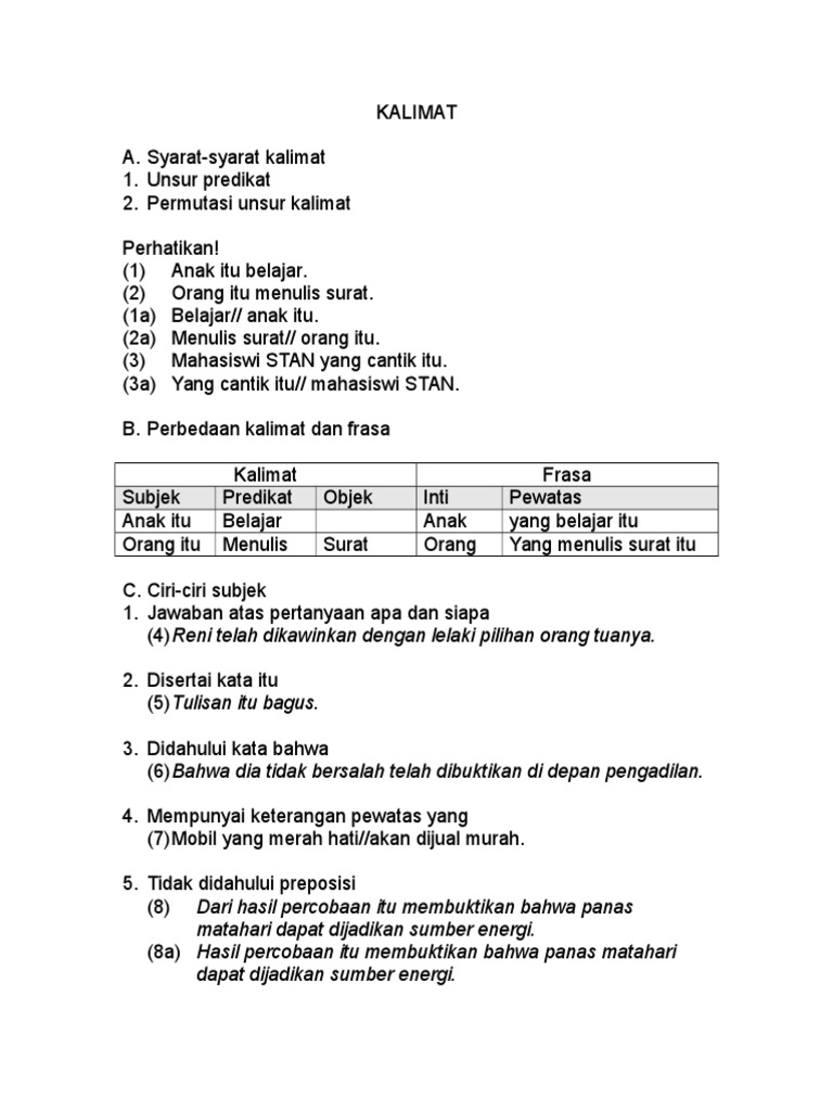 Subjek Bahasa Indonesia Materi Kalimat