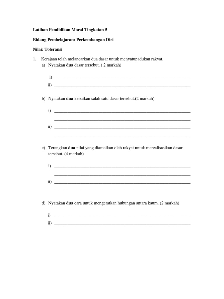 Latihan Pendidikan Moral Tingkatan 5