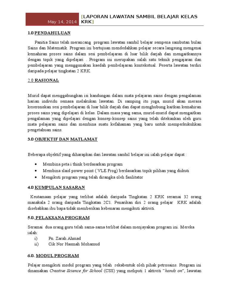 Format Surat Rasmi Lawatan Sambil Belajar Rasmi Sub