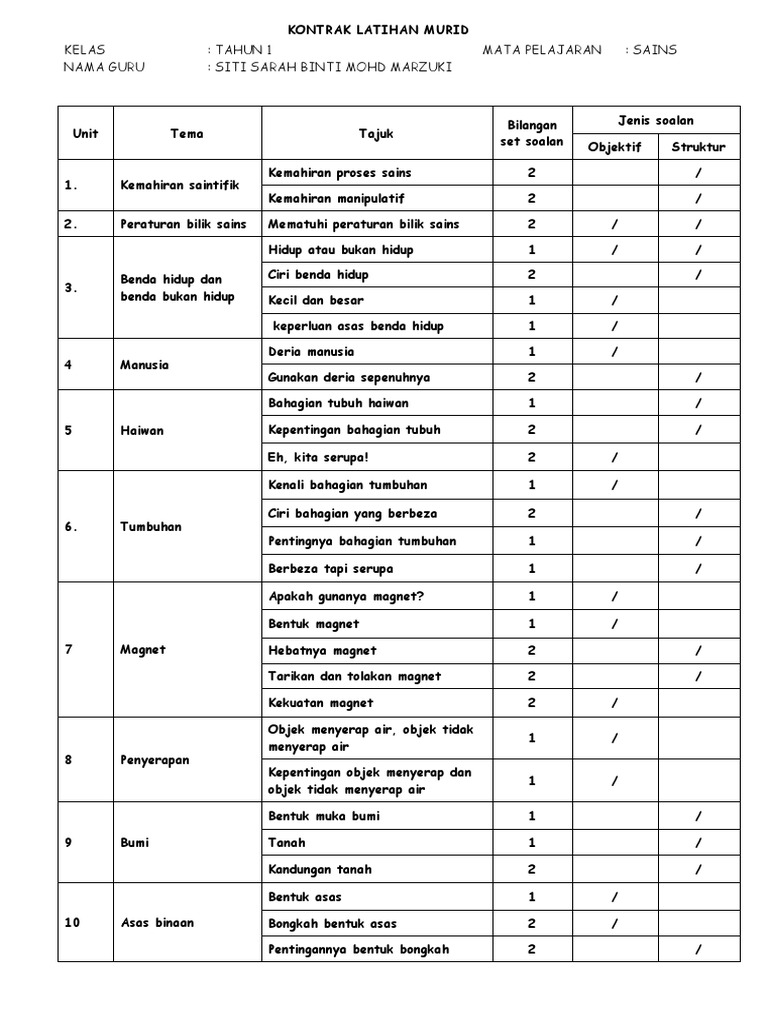 Pbs Kssr Sains Teknologi Tahun 1