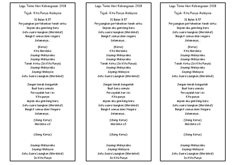 Lirik Lagu Tema Merdeka 2018 Docx Lirik Lagu Tema Merdeka 2018 Kita Punya Malaysia 31 Bulan 8 57 Perjuangkan Pertahankan Tanah Airku Impian Aku Course Hero