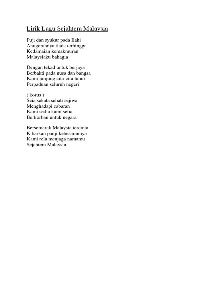 Lirik Lagu Sejahtera Malaysia Pdf Document