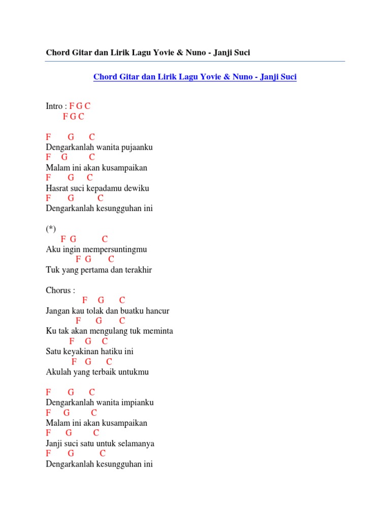 Chord Gitar Dan Lirik Lagu Yovie Nuno Janji Suci
