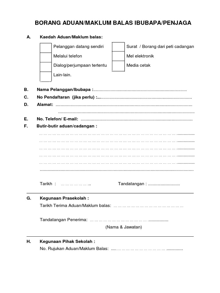 Maklumbalas Contoh Borang Aduan Pelanggan