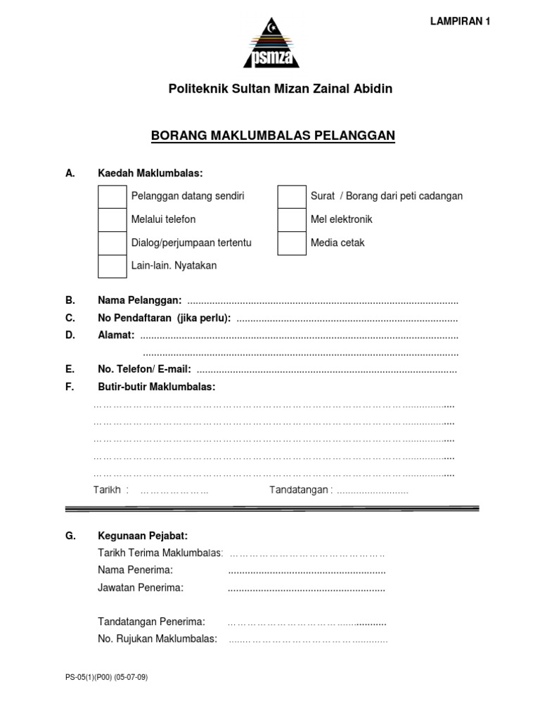 Pk 11 1 Borang Aduan Pelanggan Doc
