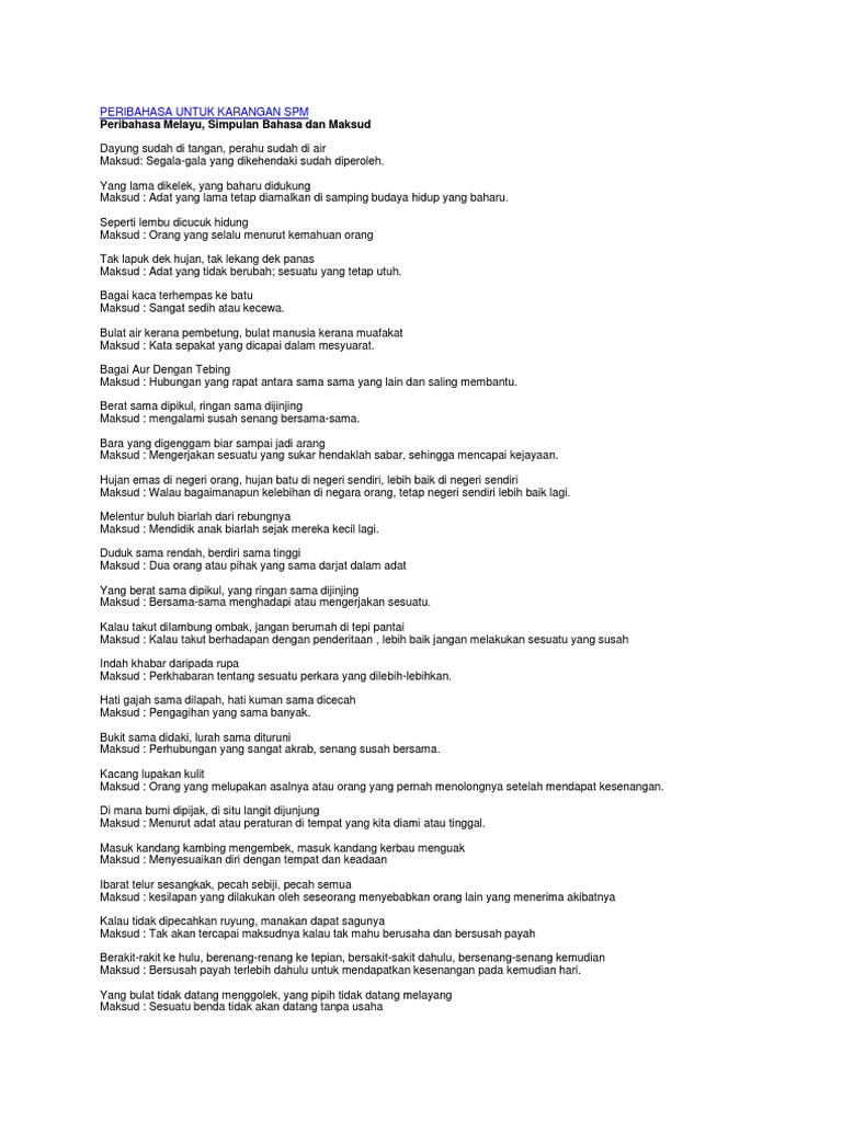 Peribahasa Untuk Karangan Spm